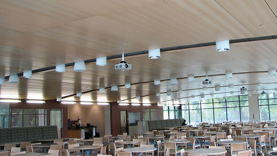 Create beautiful spaces and quiet noisy interiors with Richter acoustical ceiling & wall paneling.